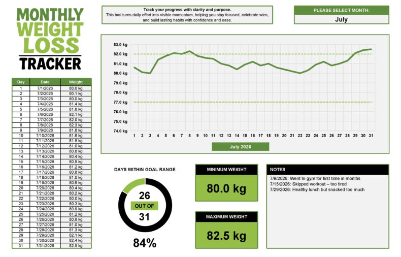Monthly Weight Loss Tracker Template 01